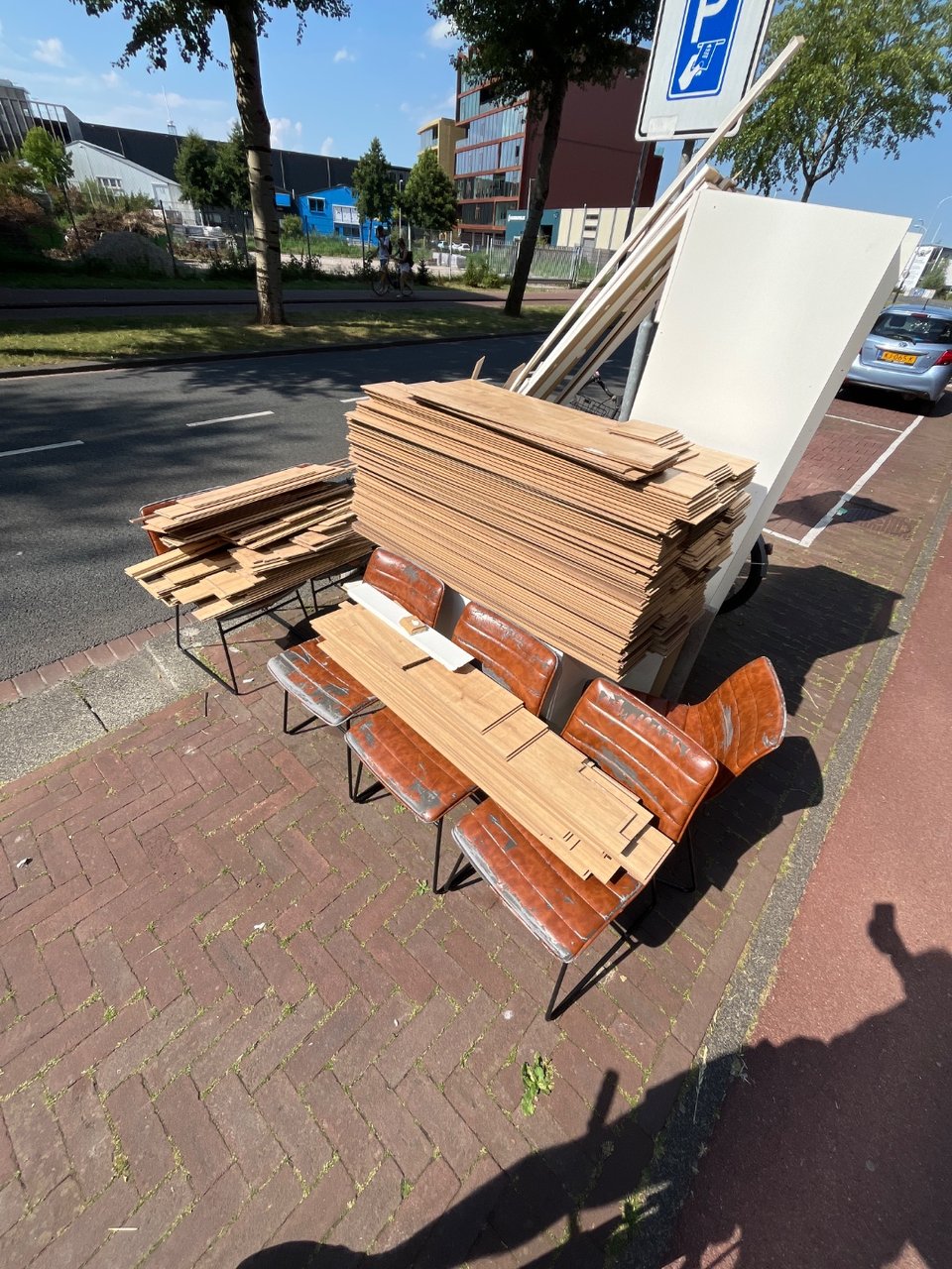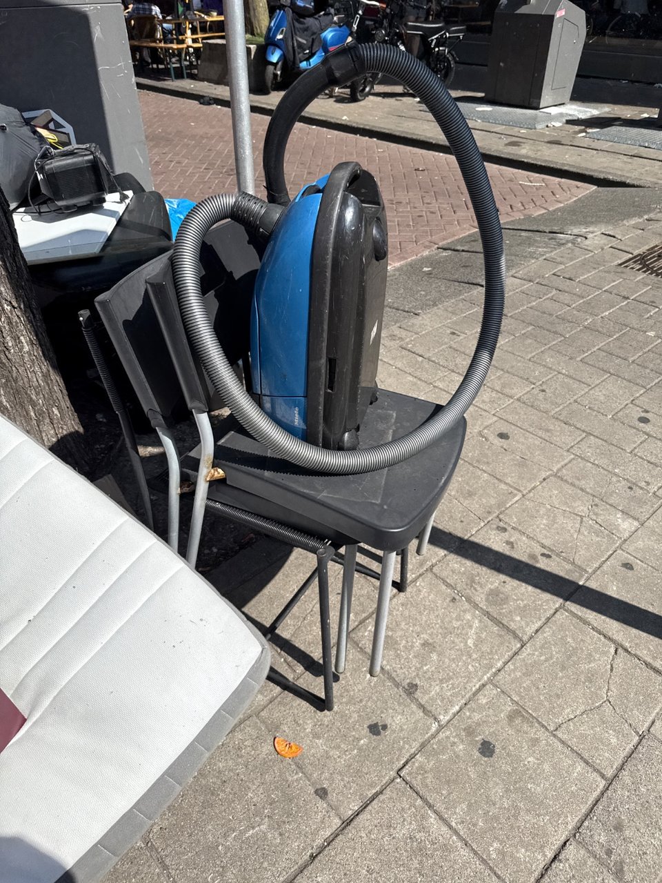 Shoe cabinet, new laptop bag, hiking bag used kitchen items, ladies clothing, kid's games. Note: Red suitcase is broken. Tolstraat 2