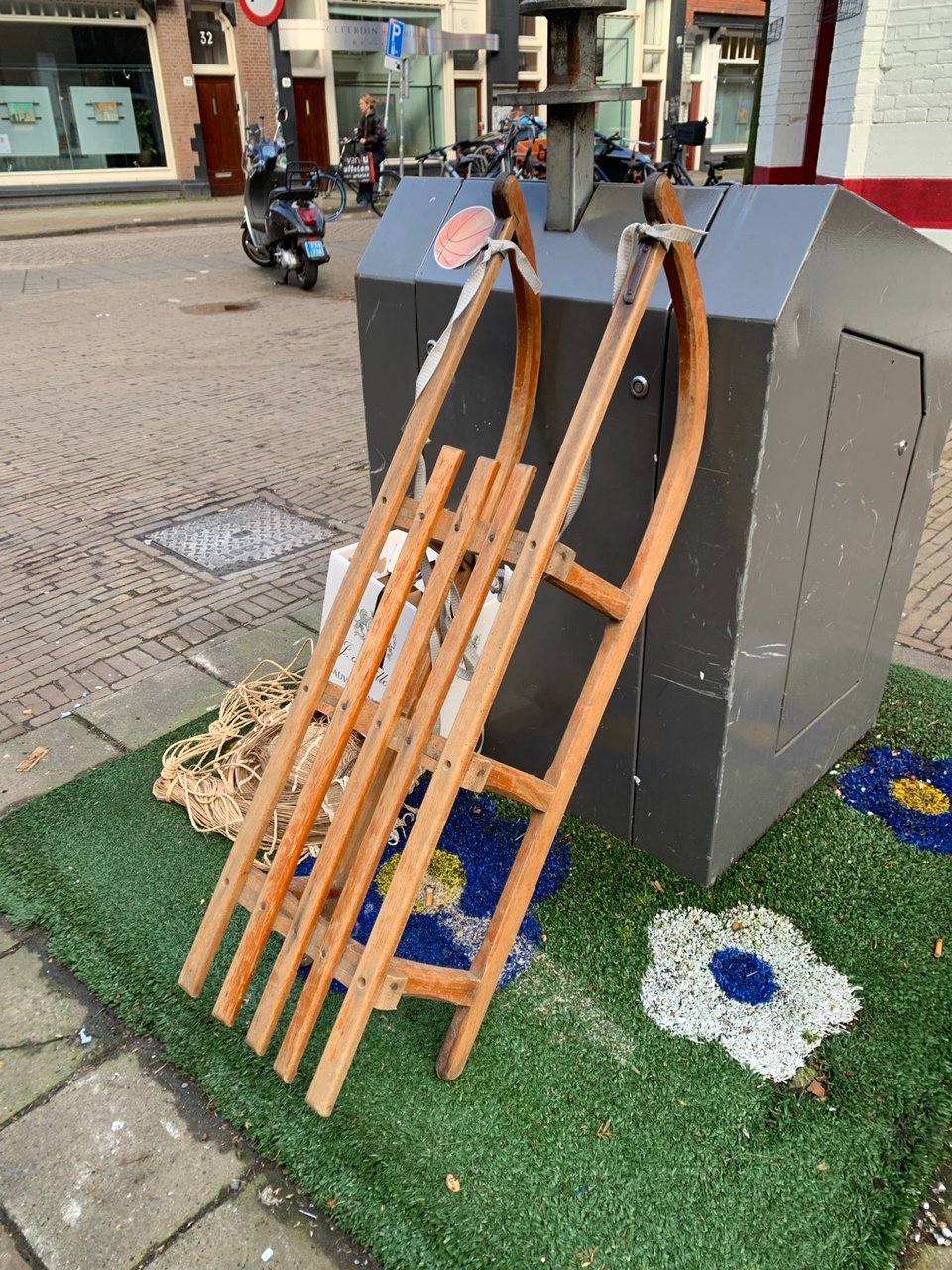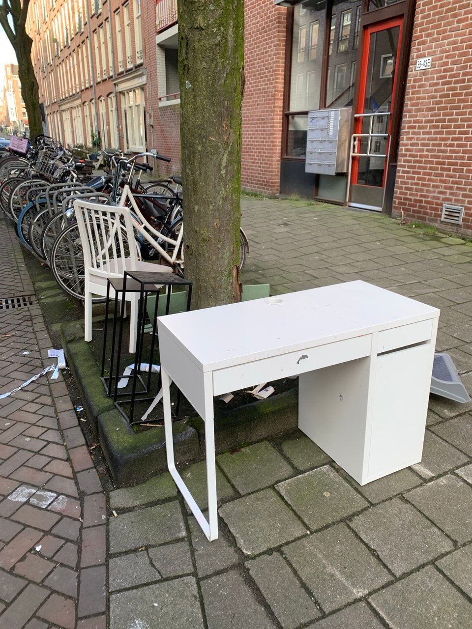 Nice white chair near Dop makelaars. Corner Ferdinand Bolstraat / Vincent van Goghstraat.