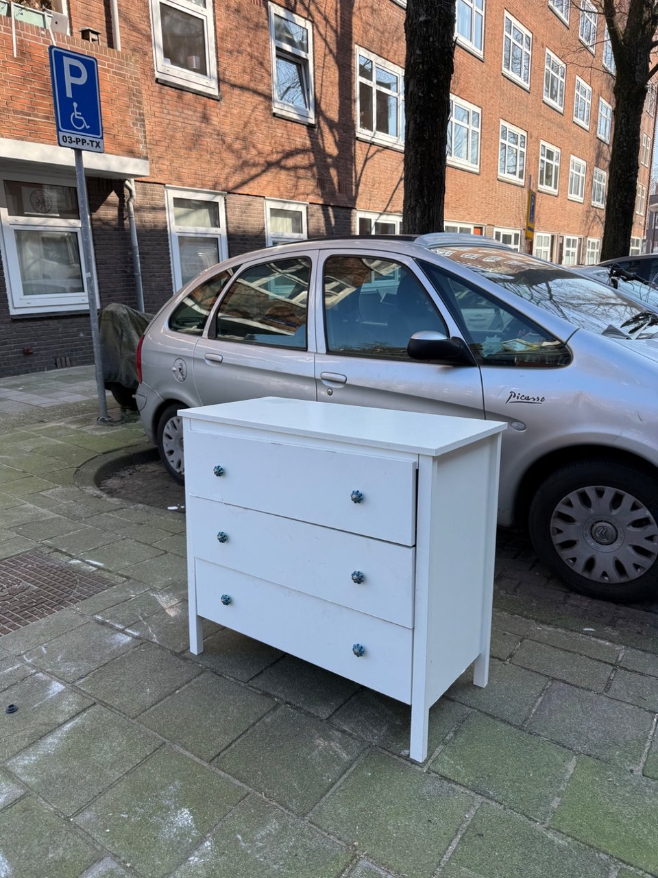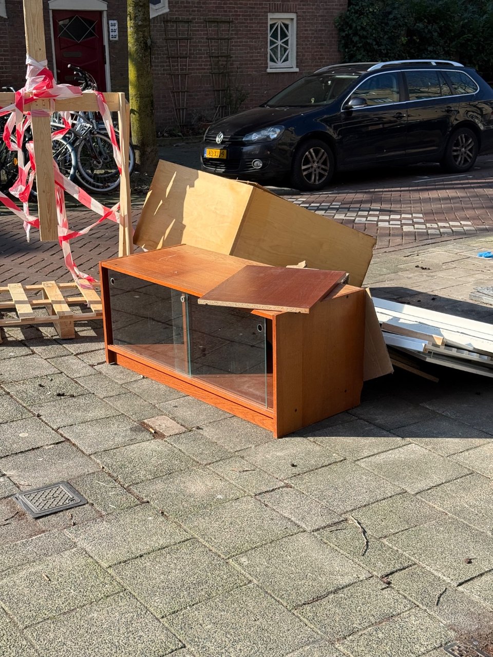 Super nice old desk. Gemeente pickups on Thursday morning. Swinging door works great.