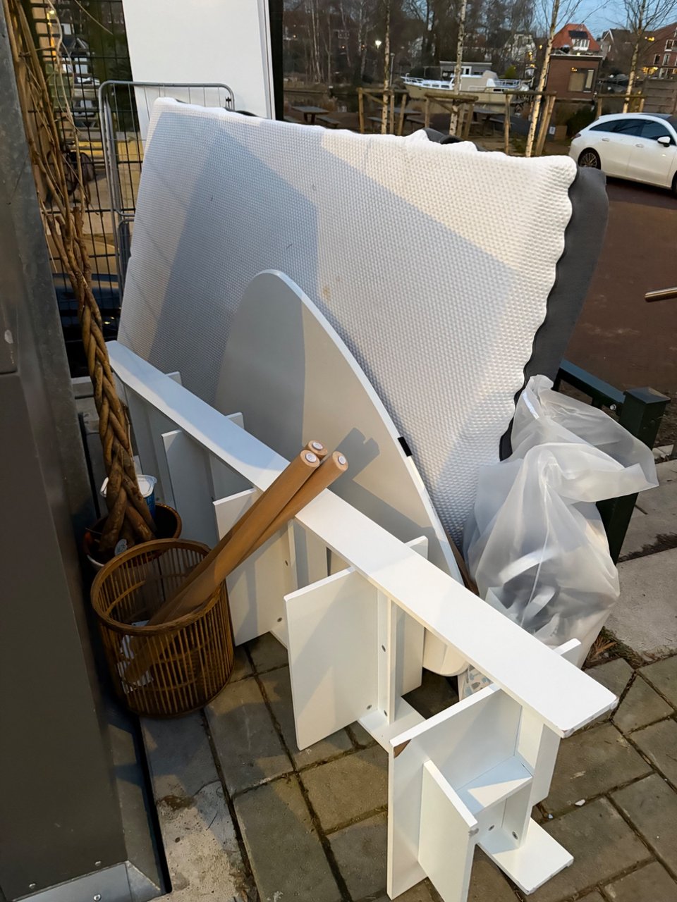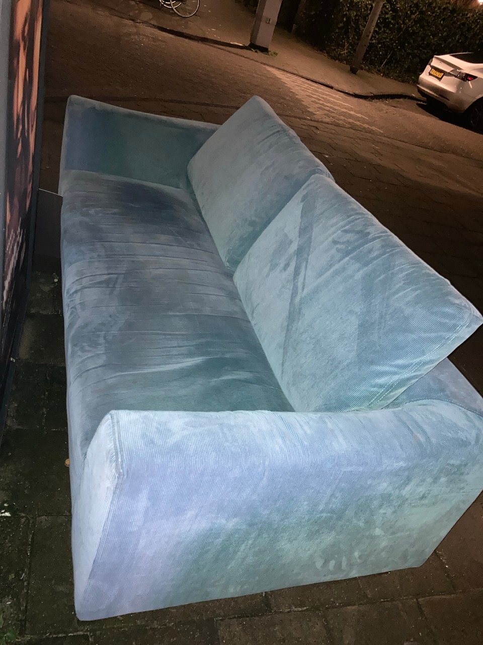 My old couch! Is more comfortable than it looks. Is still in good shape! Just put it outside a few minutes ago.