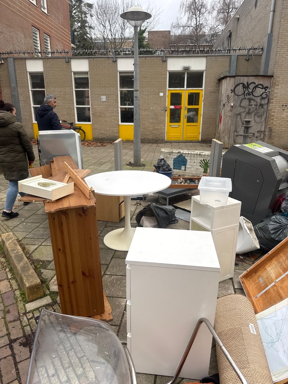 Lamp and cupboard at the glas/paper/bins