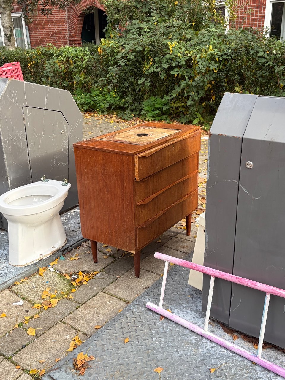 Gespot bij het grofvuil: Chesterfield (achtige) bank helaas zonder kussen. Helaas kunnen we 'm niet meenemen. Wie vindt dit een leuk project? 🙂 Lokatie: ter hoogte van Dierenriem 25 in Amsterdam Noord.