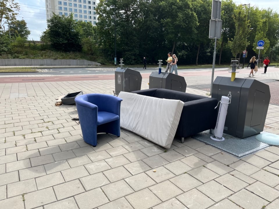 White swivel, chair, hanging mirror pair, black dresser (disassembled), black bookshelf (disassembled), black tv stand (disassembled), wood laminate table, black standing closet (disassembled)